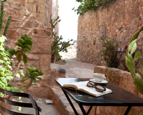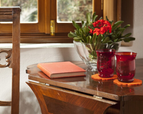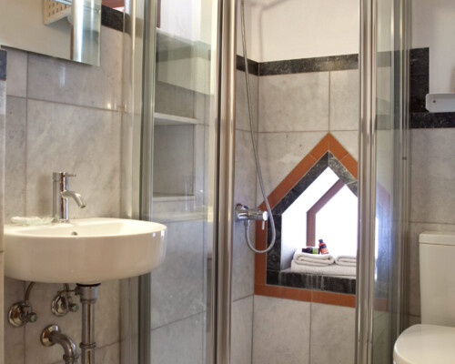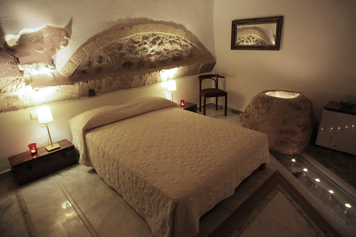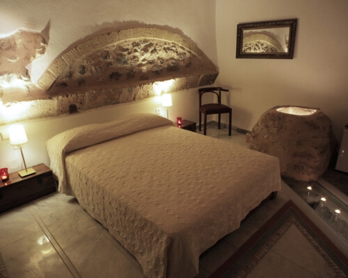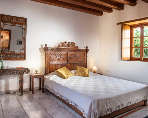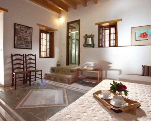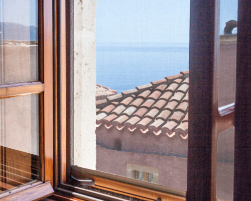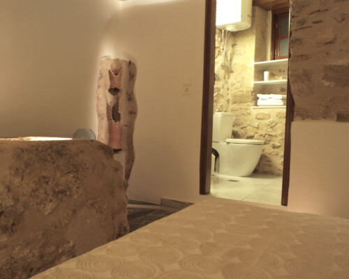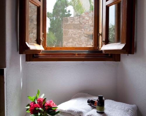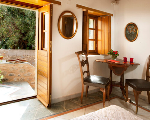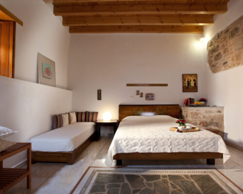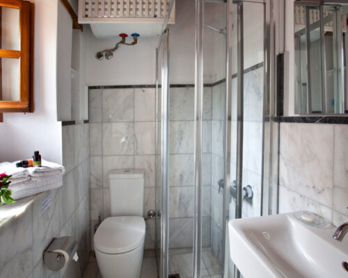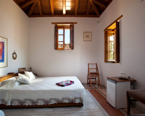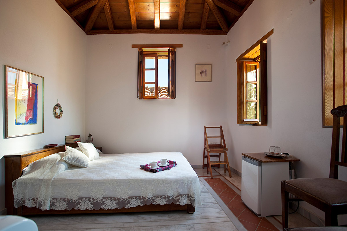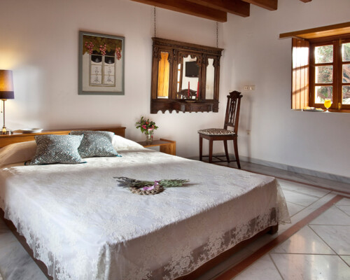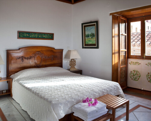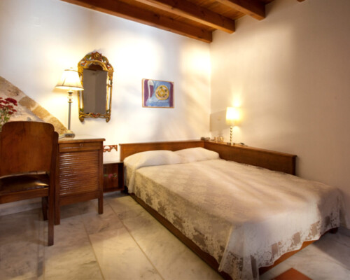 The double rooms are located at different parts and levels of the hotel buildings, from the ground up to the second floor. They benefit from different views and orientations. Some provide independent access via the adjacent alleyway. Each room comes with antique double beds, marble-lined bathrooms, and its own, unique atmosphere. They all have access to the hotel’s wonderful public terrace, from where guests can enjoy panoramic views of the Castle and the sea.